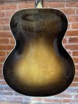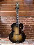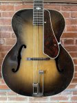 This old gem plays amazing for it's age! It is a Pre-Gibson Epiphone Triumph made circa 1941. It has a lot of play-wear around the body, neck, and headstock and some cracks that had been previously repaired and appear to be stable. Other than that, there doesn't seem to be anything hindering the structural integrity of the instrument. As for the playability, the action is reasonably low with plenty of room to move upwards on the adjustable bridge. Also, the neck profile was shaped to a soft V, not too bulky, not to small. The frets are in good condition, and is said to have had a refret about 5-6 years ago. All original hardware besides the pickguard. Serial # 18141 Comes With Hard Case