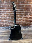 Features a spruce top, scalloped bracing, mahogany back and sides, 20-fret maple neck, rosewood fingerboard and bridge (with compensated saddle), Stratocaster guitar headstock shape, die-cast machine heads, Fender FTE-3 preamp for easy amplification