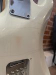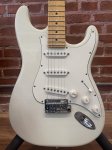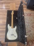 This guitar is in great shape for being previously owned. It has a quality relic on the body, and all of the hardware is in good shape and there is a new bridge on it (stock Bridge in the case). The set up on it is great, with the action landing at 3 & 1/2 64ths of an inch on the treble, and 4 64ths on the bass. The maple neck on it feels great in the hands, Suhr calls it a vintage C profile, but it gets flatter as you go up the neck, not too chunky . As for the frets, 9"-12" Compound radius, there is little to no wear and stainless steel. This instrument is 7.8 lbs. The trem bar is in the case along with other case candy. Comes With Hard Case.